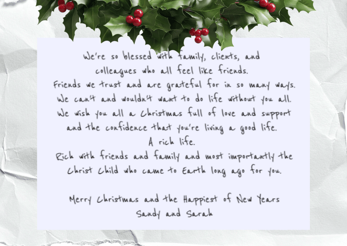 We wish you all a Christmas full of love and support and the confidence that you’re living a good life.
